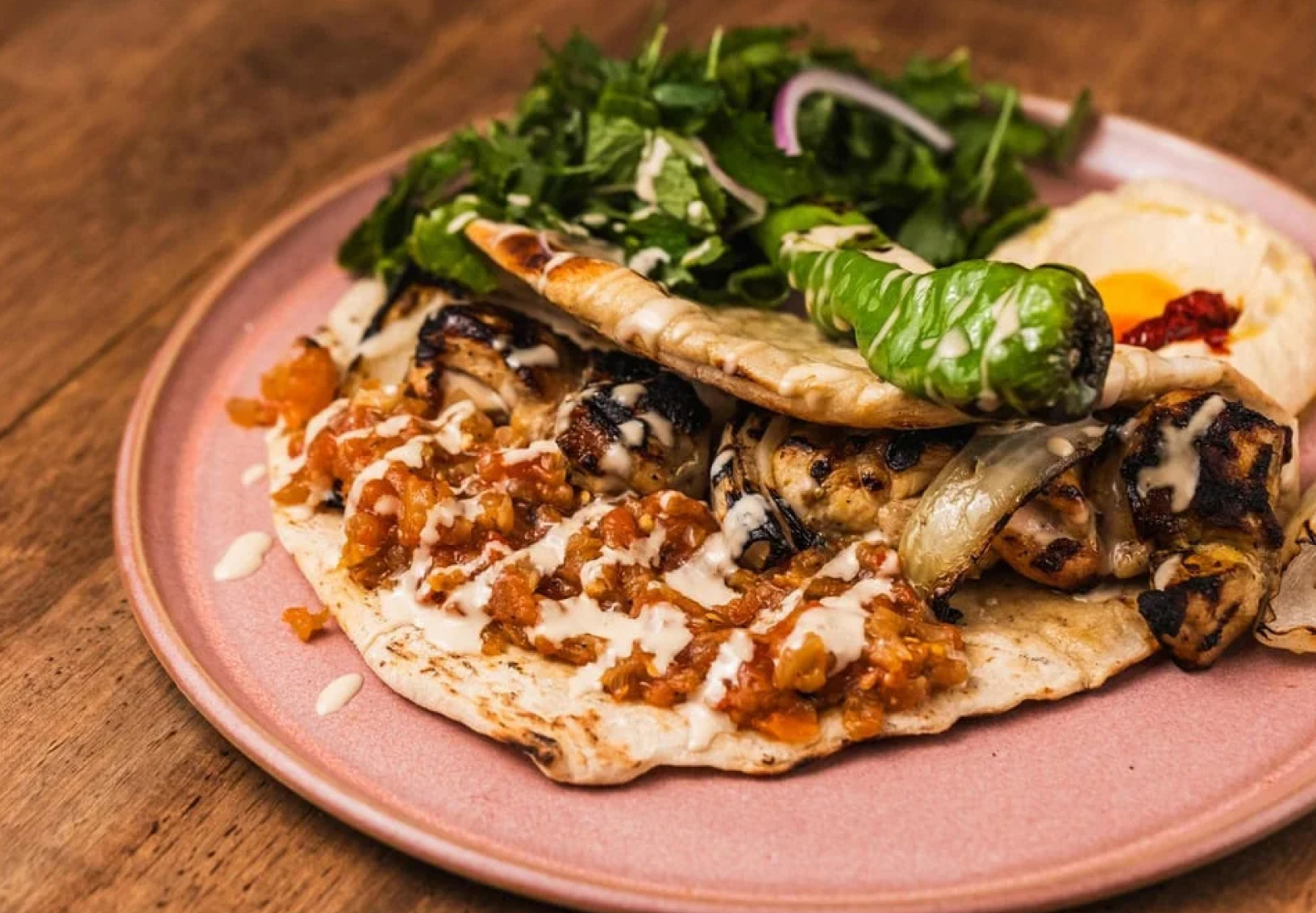 A modern Mediterranean restaurant serving vibrant Israeli-inspired dishes made with fresh ingredients, offering flavorful brunch, lunch, and dinner options in a warm and inviting neighborhood setting.